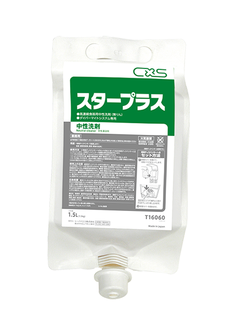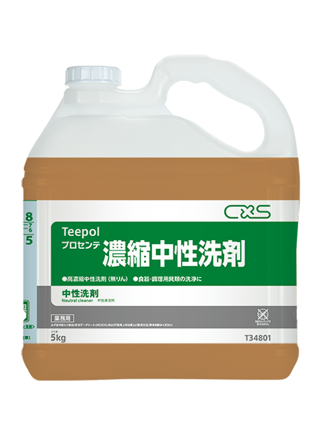 「適正洗浄」「省スペース」「コスト低減」を目的として開発された超高濃縮液体中性洗剤です。食器・調理用具類、野菜・果物の洗浄に。